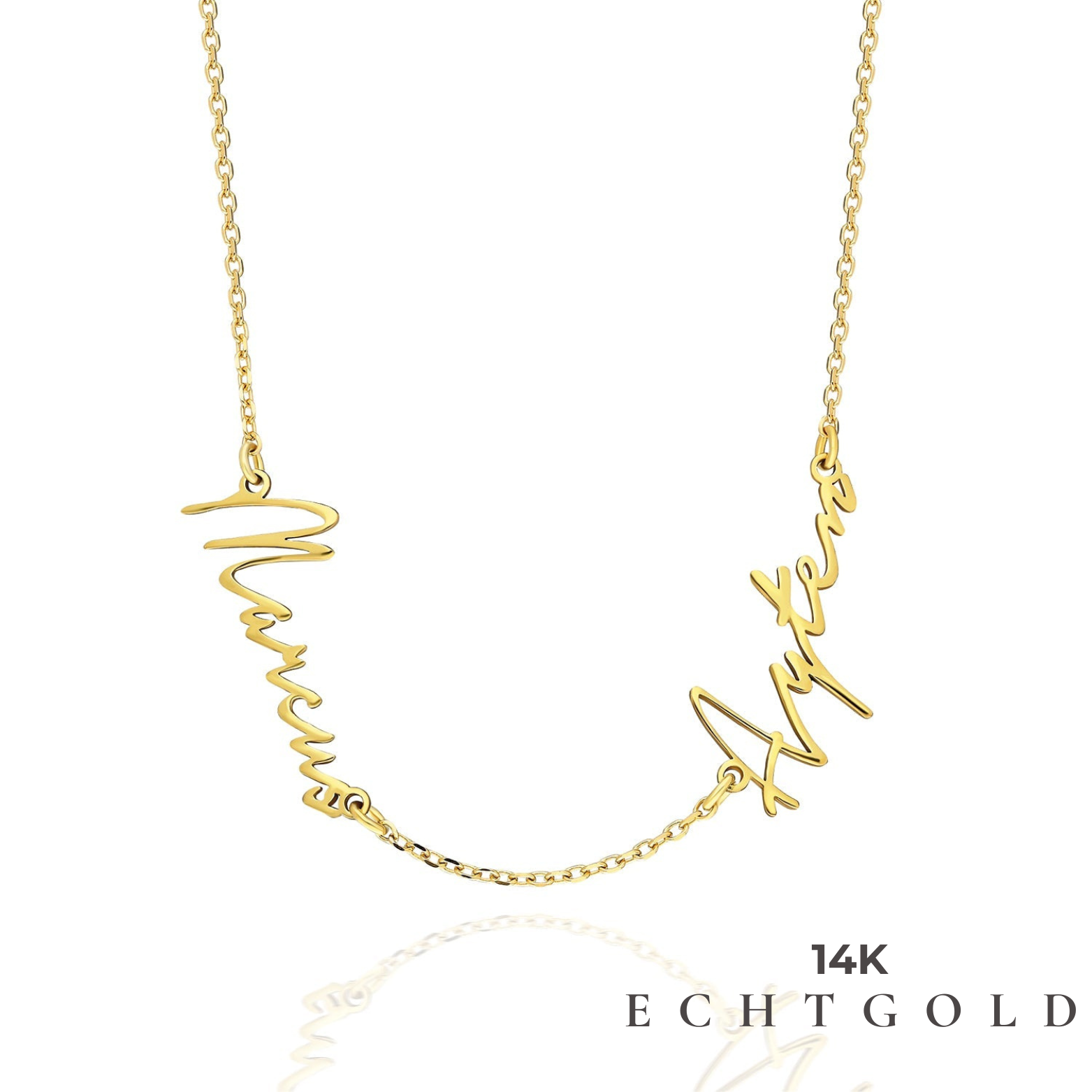 Zwei Namen, verbunden in einer Linie aus purem Gold